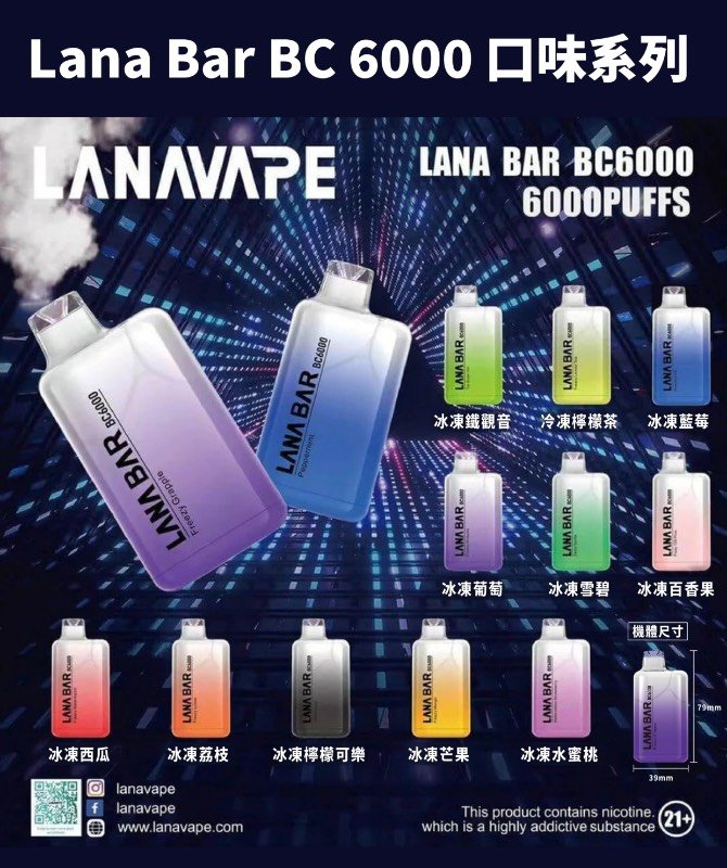 探索一次性LANA電子煙 ,提供高达6000口的卓越吸烟体验。这款电子烟专为需求便捷与长效的用户设计,无需充电或更换烟弹,完美适合忙碌的生活方式。每支LANA電子煙都经过严格的品质检测,保证正品安全与稳定性,让您享受持久且稳定的烟雾效果。多种口味选择,如荔枝百香果柠檬茶雪碧蓝莓西瓜葡萄铁观音水蜜桃,满足您的不同需求。选择LANA,让您的吸烟体验更轻松、更愉悦